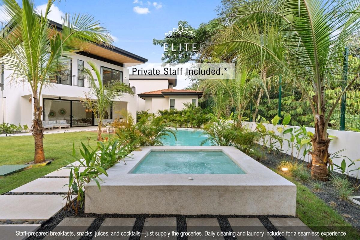 Your stay includes dedicated house staff for breakfast prep, cocktail service, cleaning, and laundry, ensuring effortless relaxation. Located just minutes from Tamarindo Beach and its vibrant town, Royal Estates promises an exceptional experience of sophistication and tropical charm.