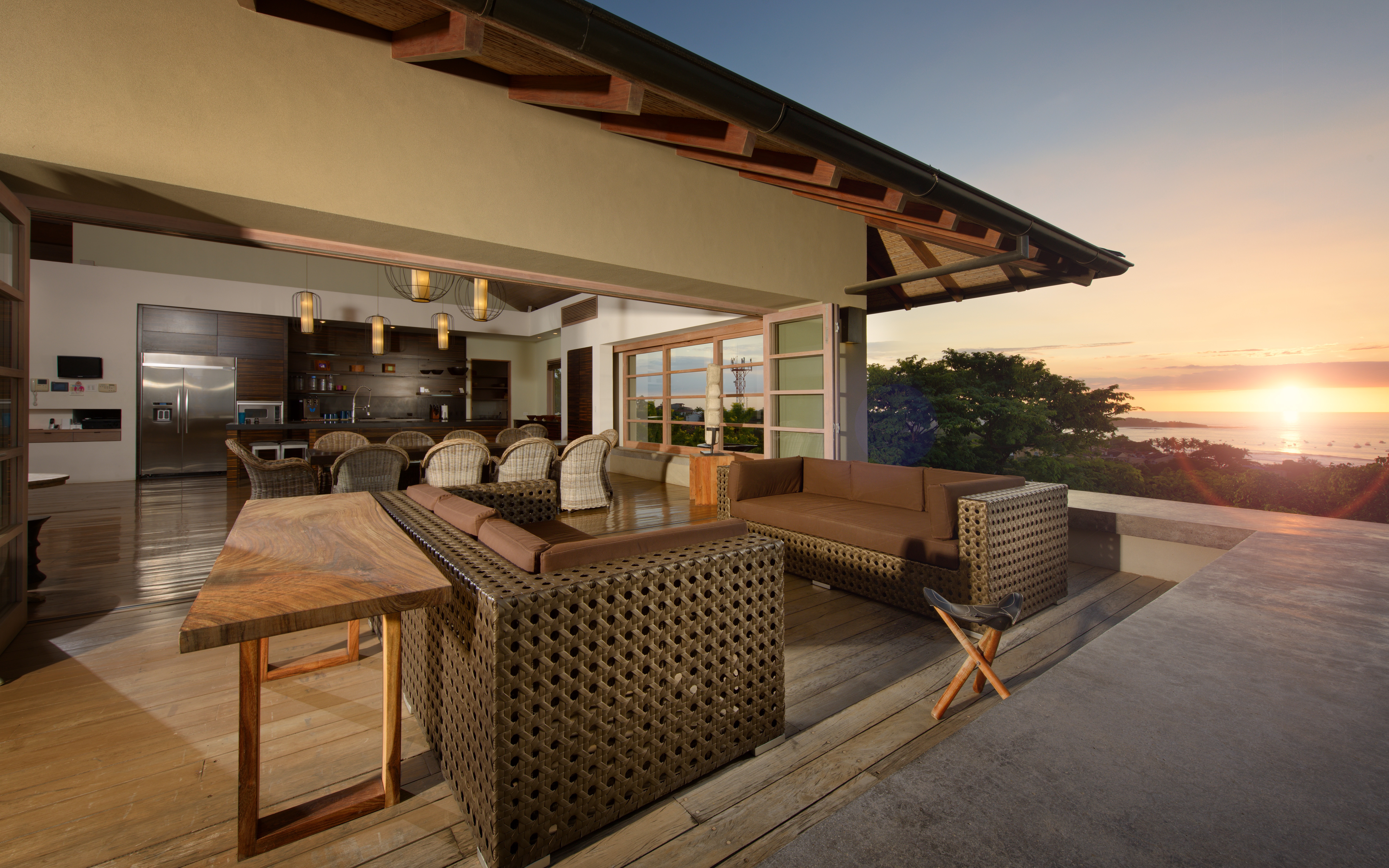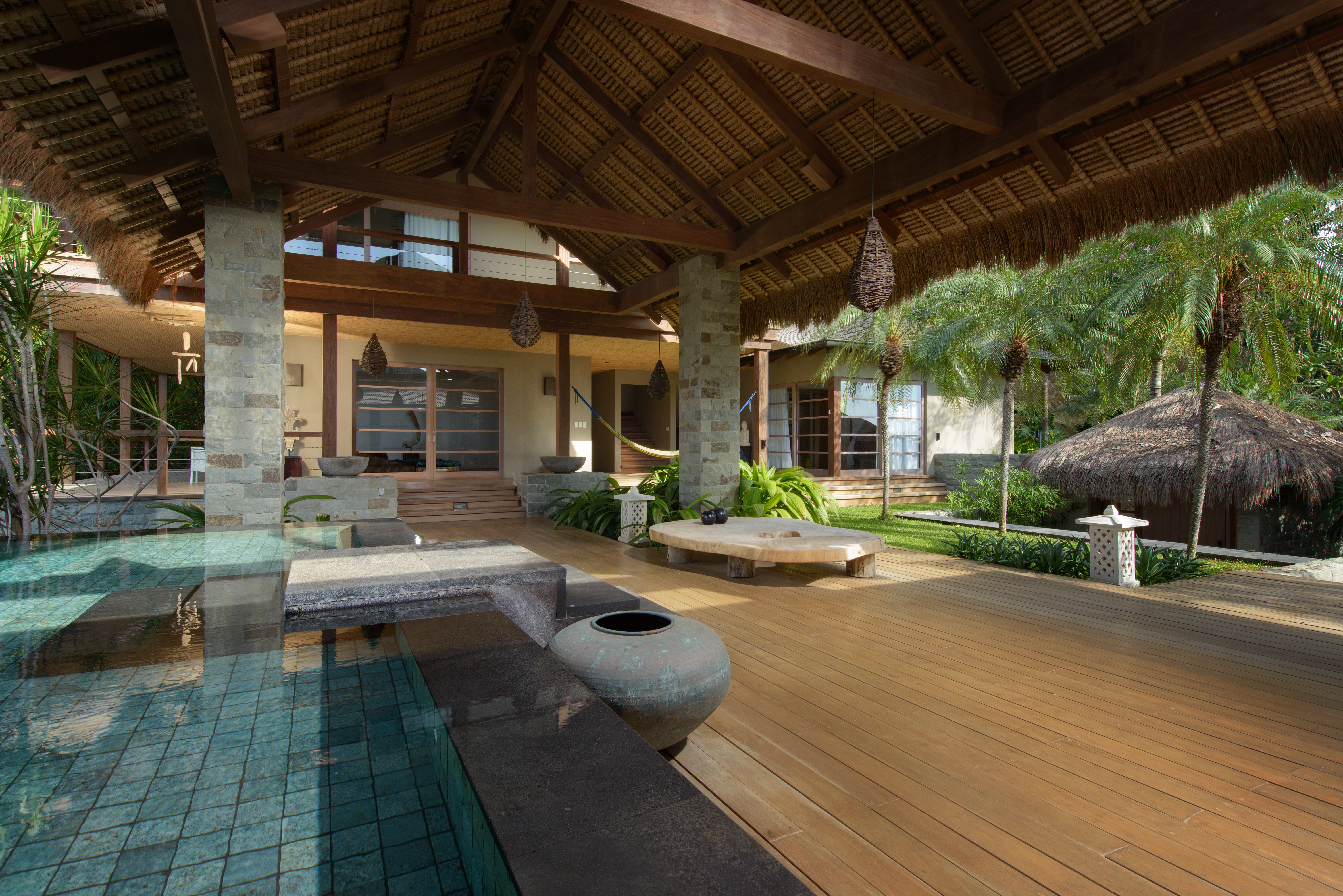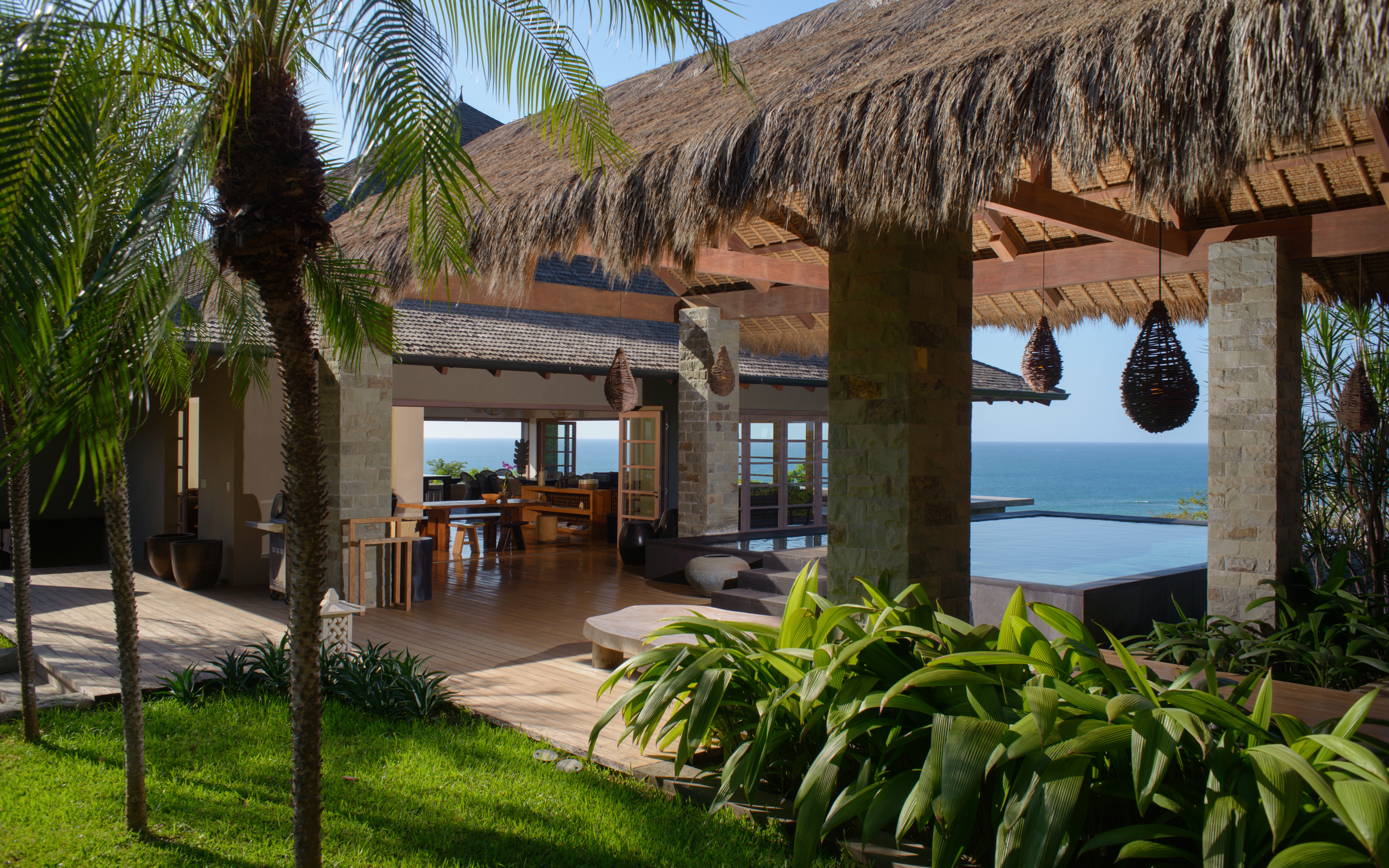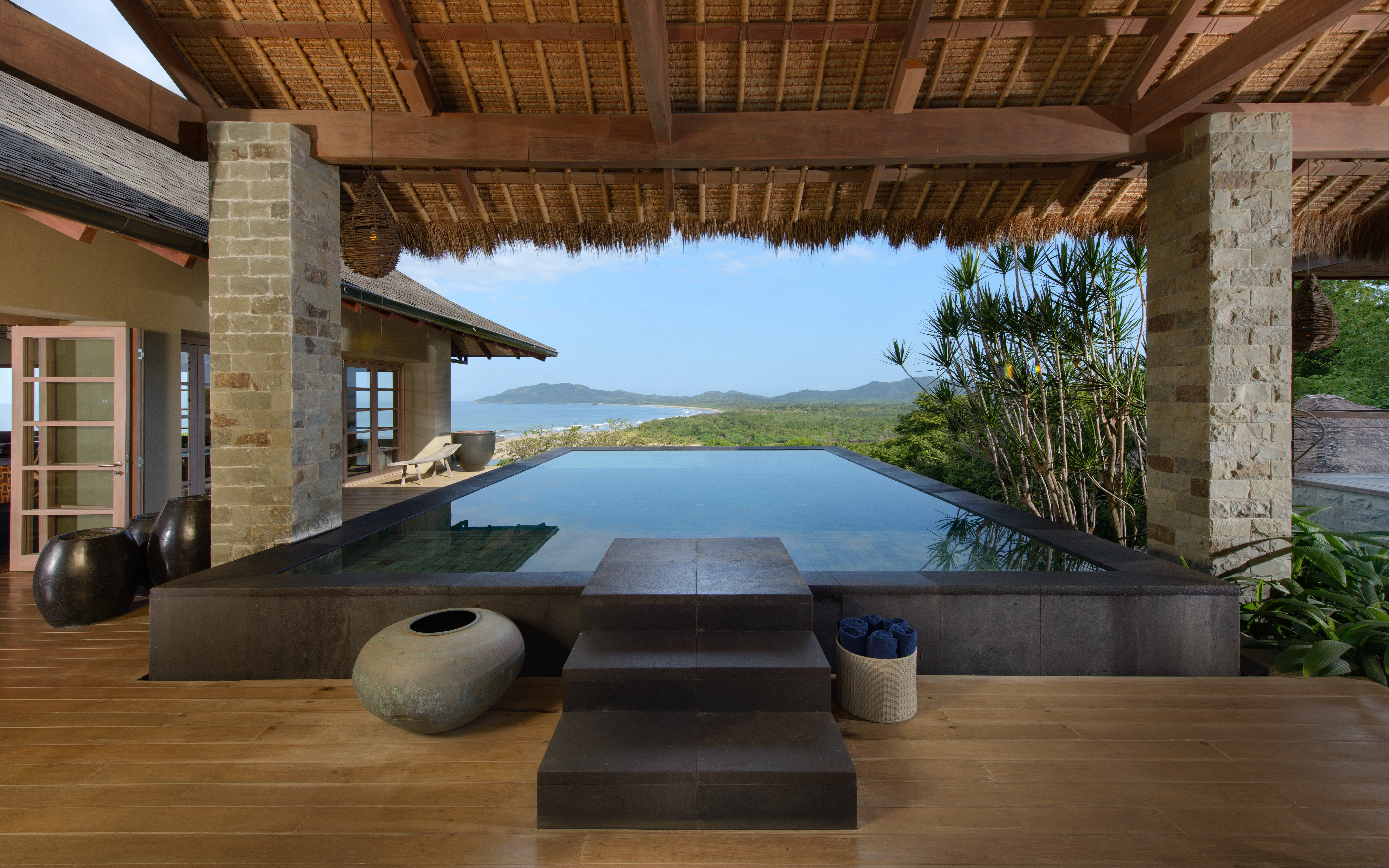Inspired by Bali living, Casa Alang Alang is approximately 15,000 square feet and features eight bedrooms, sleeping up to 20 people in great comfort and style with a unique blend of privacy and multiple ample common areas. This luxury villa is located on a private, secluded hillside at the entrance of Tamarindo with breathtaking views of Tamarindo estuary and the Pacific Ocean all the way north to Playa Grande, yet 5 minutes walking distance to the beach and town center.