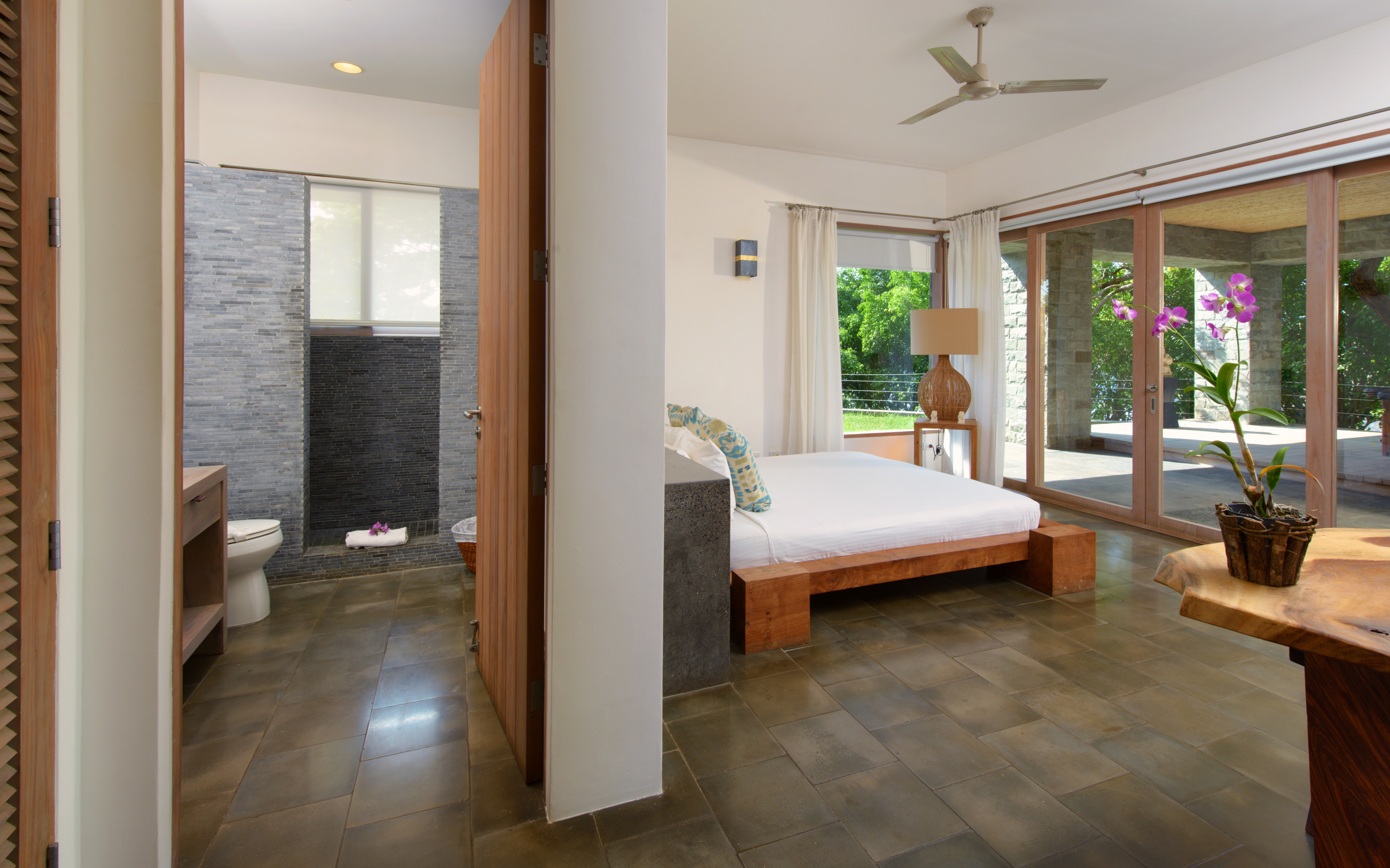 Malia Bedroom - king-size bed with full ensuite bathroom and desk