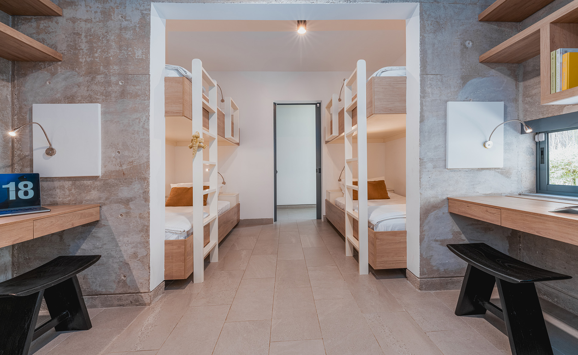 Casa Lanui features three primary bedrooms with ocean views, one primary bedroom with a garden view, and two kids’ bedrooms, each with two bunk beds, accommodating a total of 8. Additionally, there is a separate studio with a king-size bed, full bathroom, and kitchenette, ideal for accompanying staff or guests seeking more privacy. This studio has features that make it accessible for people with disabilities.