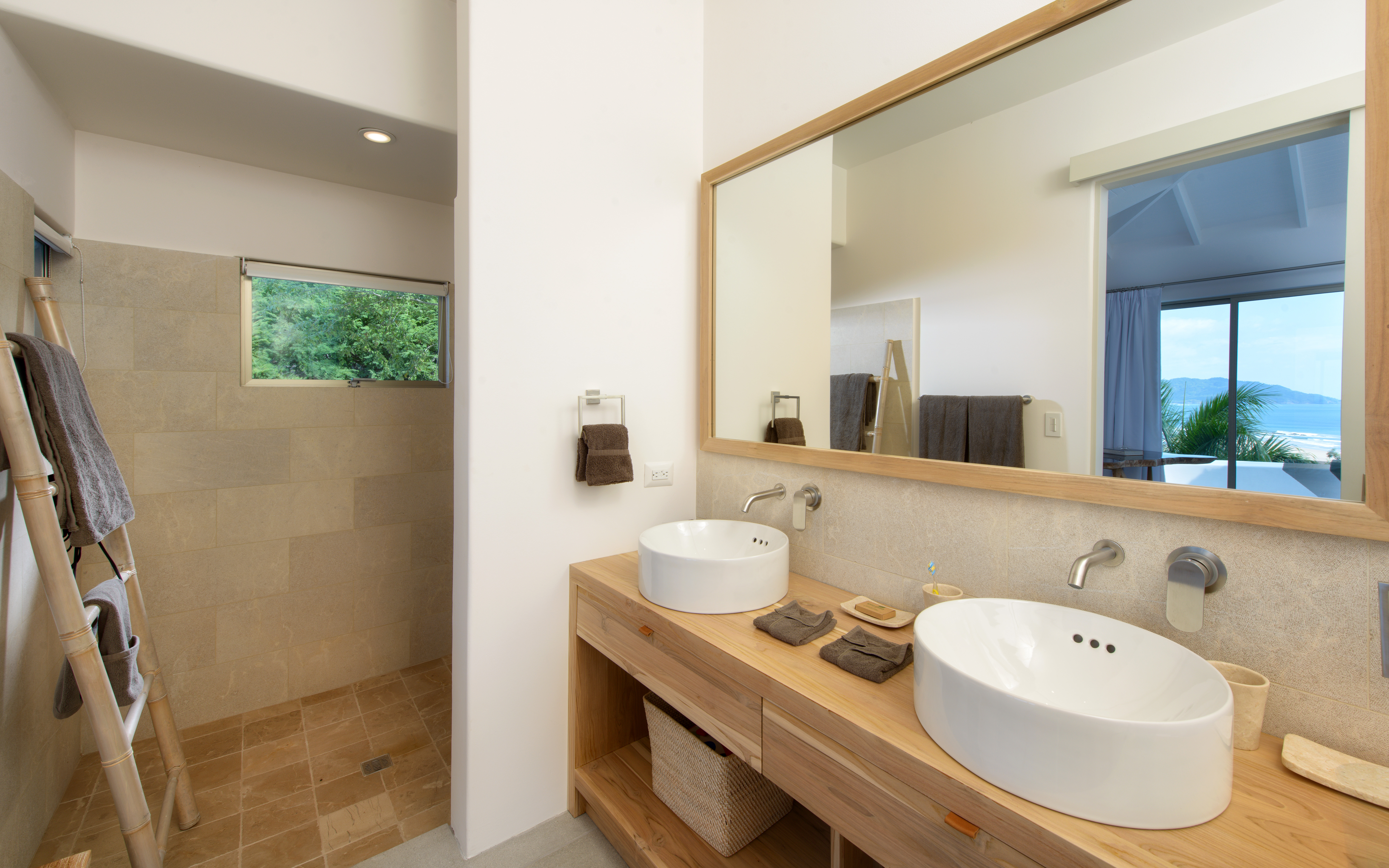 Sunset House’s indoor-outdoor tropical living plan showcases five beautiful bedrooms and an infinity pool that wraps around the terrace, offering breathtaking views of the ocean and the estuary. This villa sleeps 14 guests in comfort and style and it is an ideal luxury retreat for families, friends, wellness travelers, retreats, wedding groups and private corporate groups.