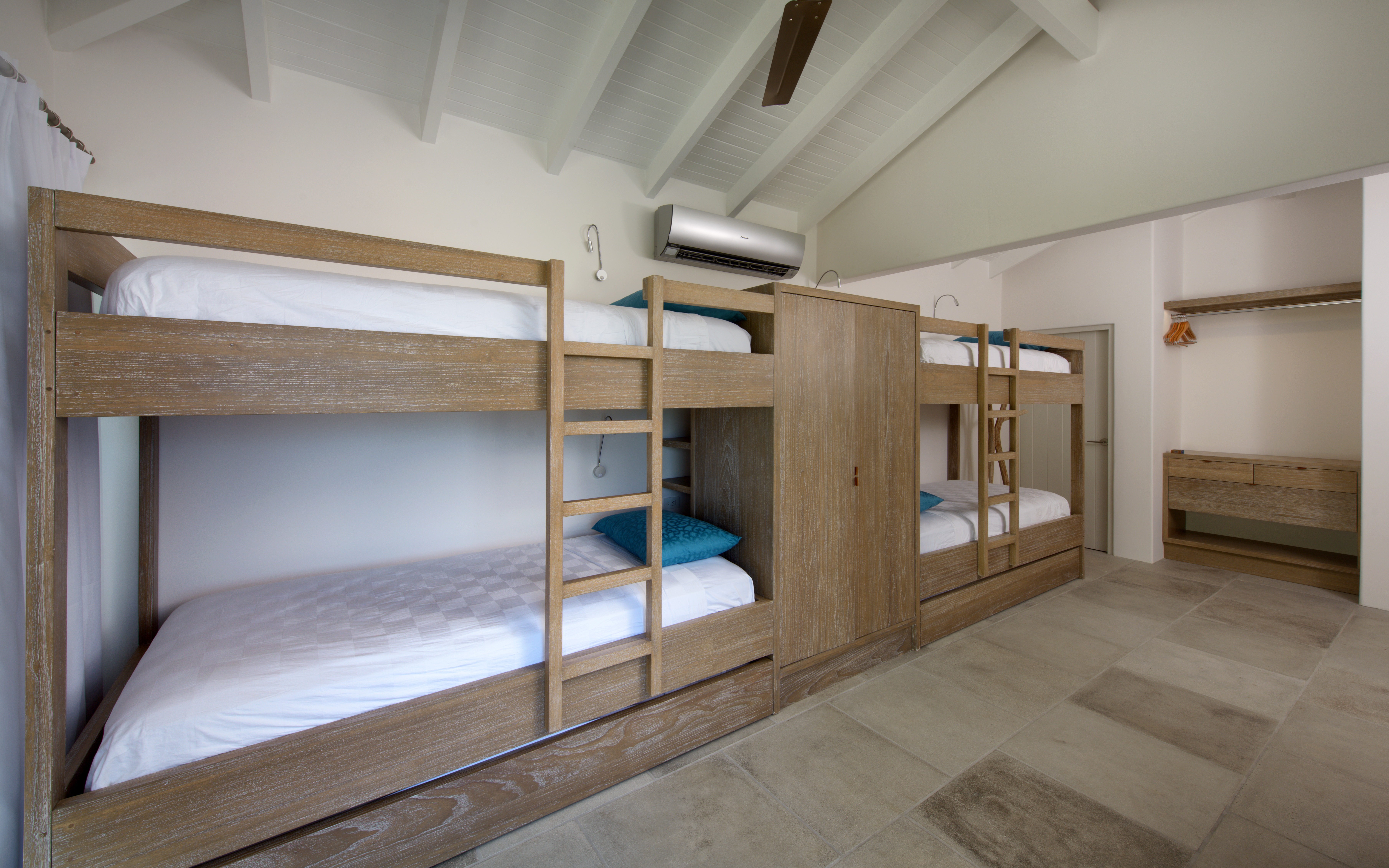 Bedroom 4 /Kids Bedroom has two bunk beds with twin XL mattresses and two pull-out beds, sleeping six people total. It also has a full ensuite bathroom and double desk.