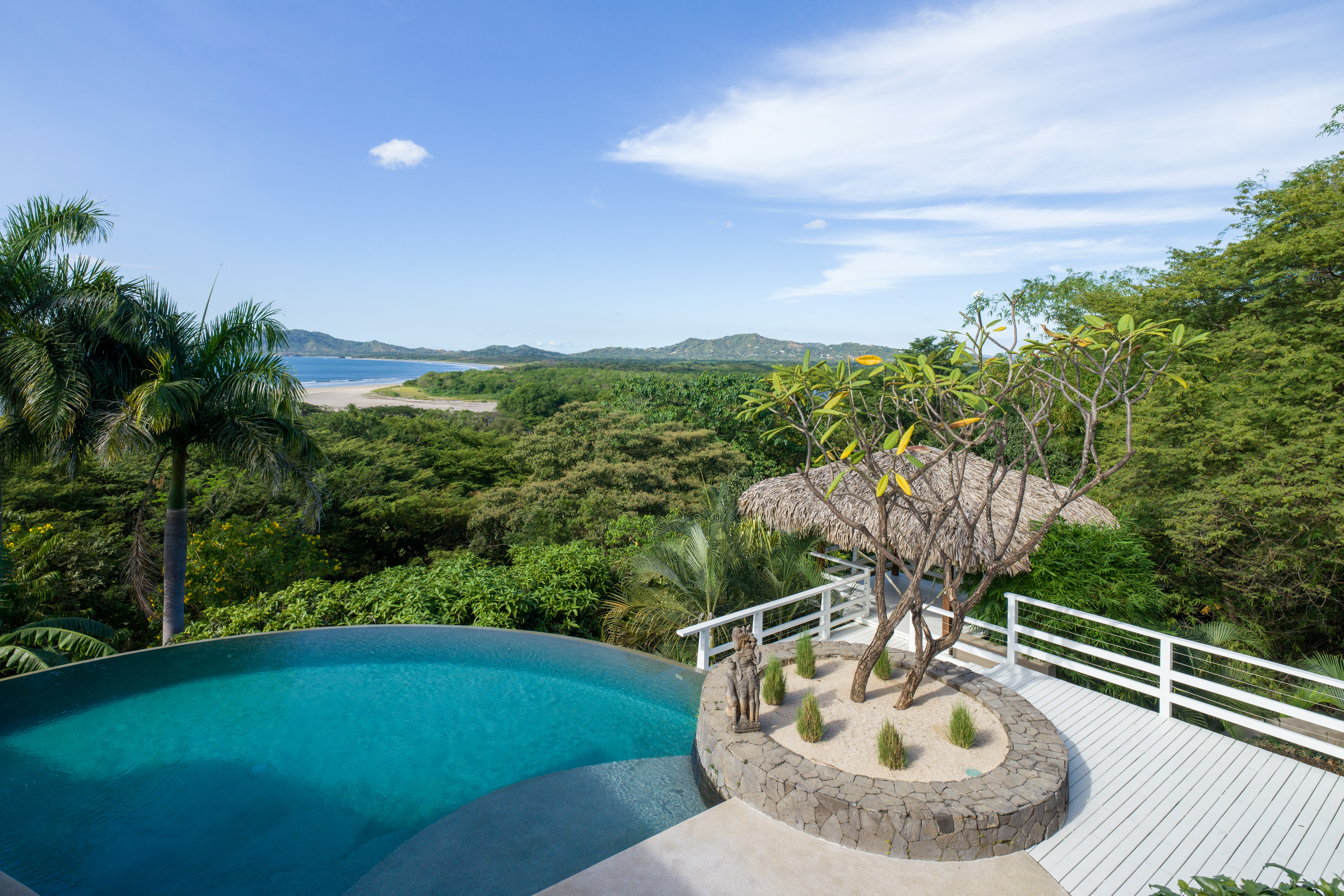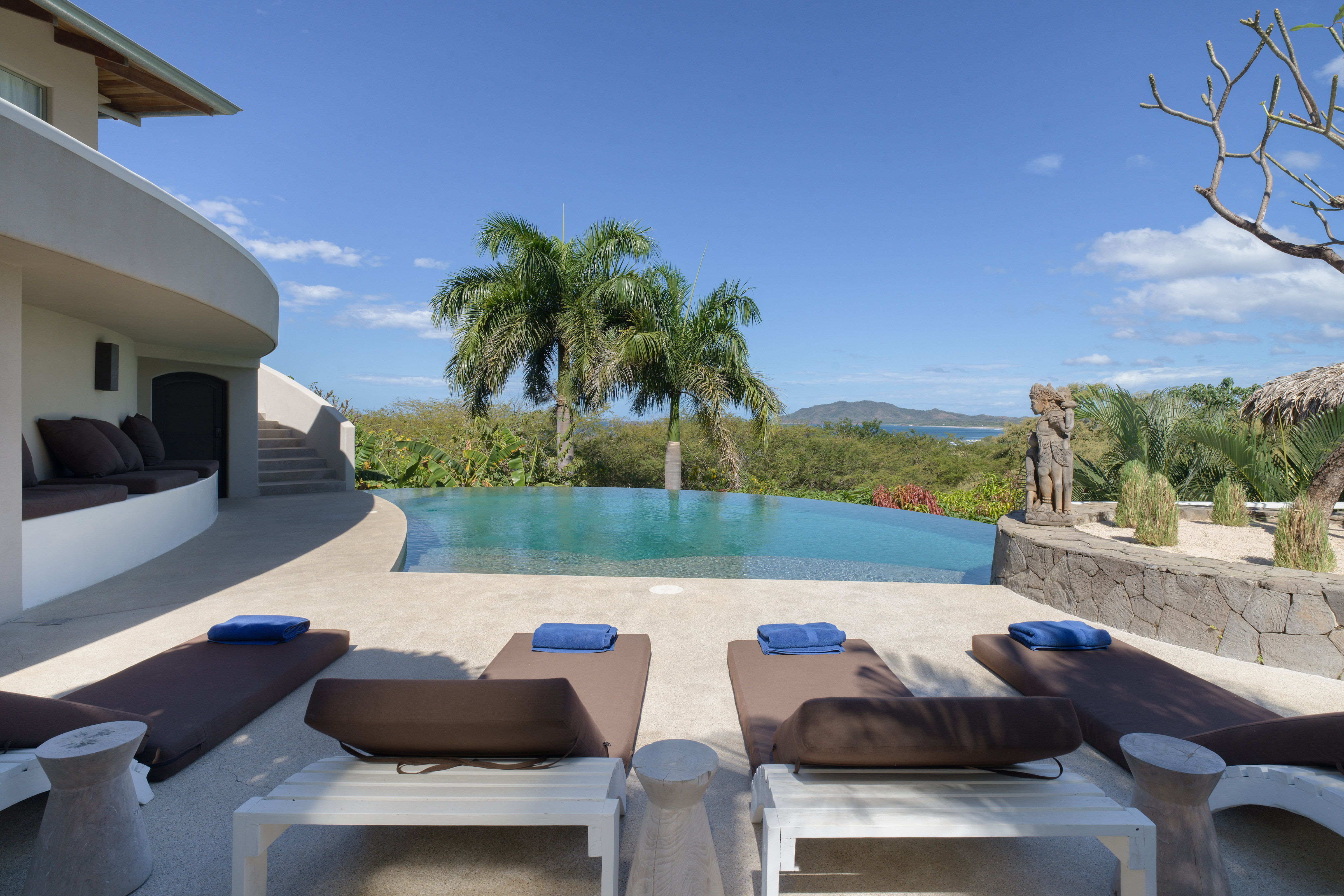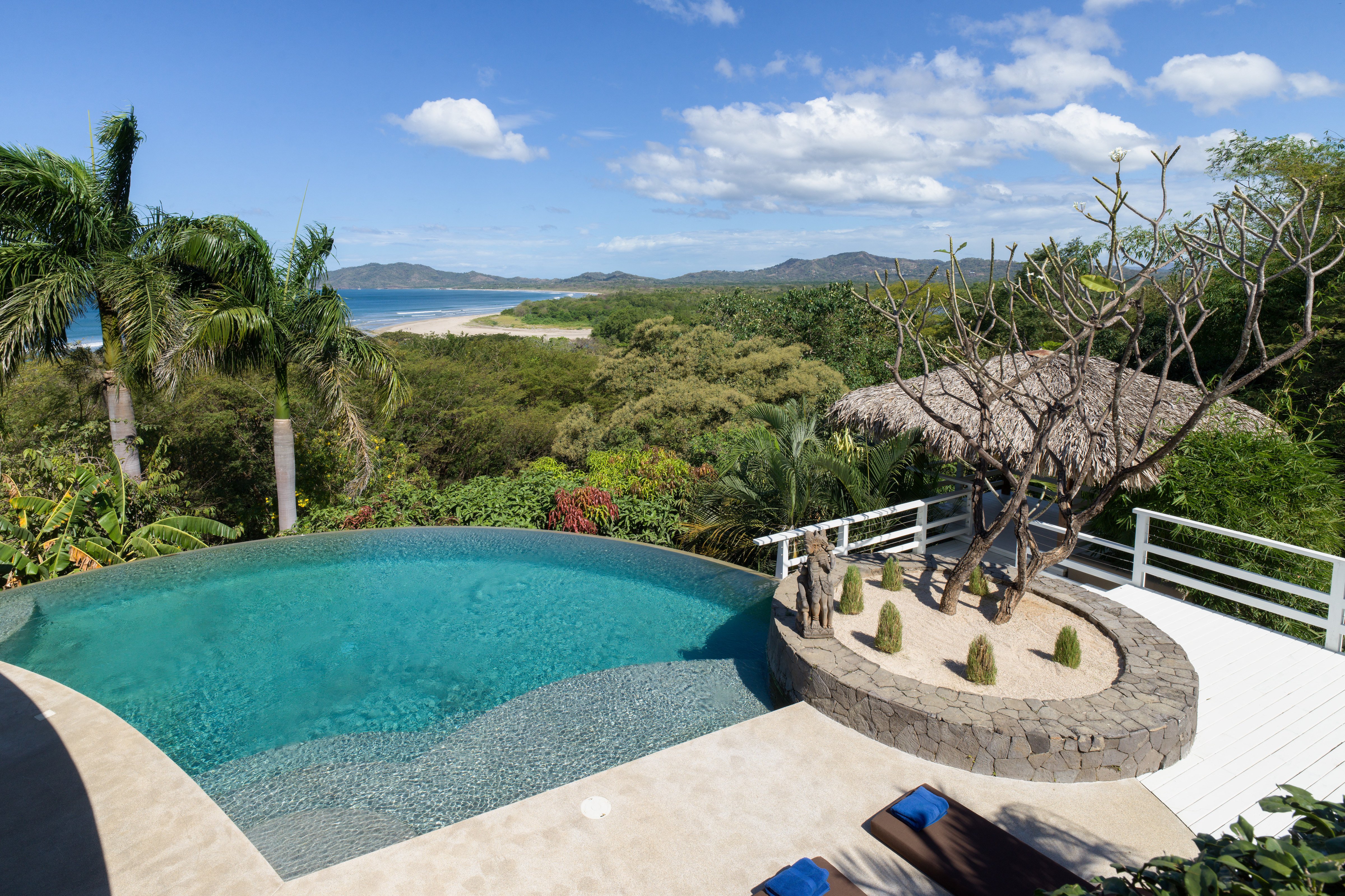 The pool overflows spectacularly towards the ocean view, and the deck has several lounges to relax and enjoy the view and one of the bests sunsets in Costa Rica.