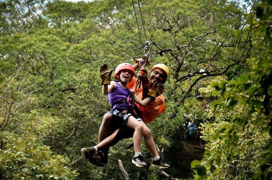 Located one hour and thirty minutes away from Tamarindo. We start our adventure with a world class Canopy tour (ziplines) that includes rappelling and rock climbing. The tour takes us through an impressive canyon formed by the lava flows of the last great eruption by the Rincon de la Vieja volcano, then we continue the adventure with a horseback ride through a deciduous forest and farmlands where you can see monkeys, birds and some of the local wildlife.