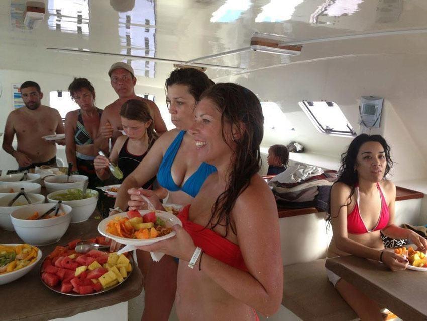– Open bar including cocktails, wine & beer, fruit platter, snacks, full meal, snorkeling equipment and bilingual guides.